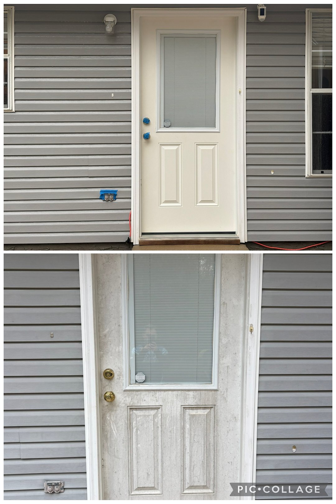 During the work we took steps to protect the paint and siding around the door. We monitored contact with nearby surfaces and rinsed the area carefully to prevent residue from remaining on the siding. The result was clean, free of the organic stain, and the original paint and siding were left intact.