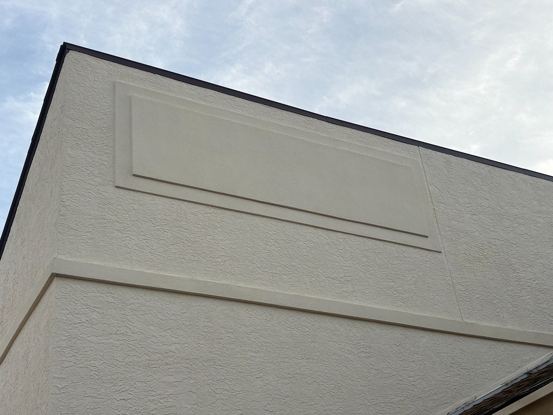 After allowing the cleaning solution to properly dwell, the exterior wall was carefully rinsed to remove the remaining contaminants and restore the natural color of the stucco. Special attention was given to ensure the entire surface was cleaned evenly to prevent streaking or inconsistent results.