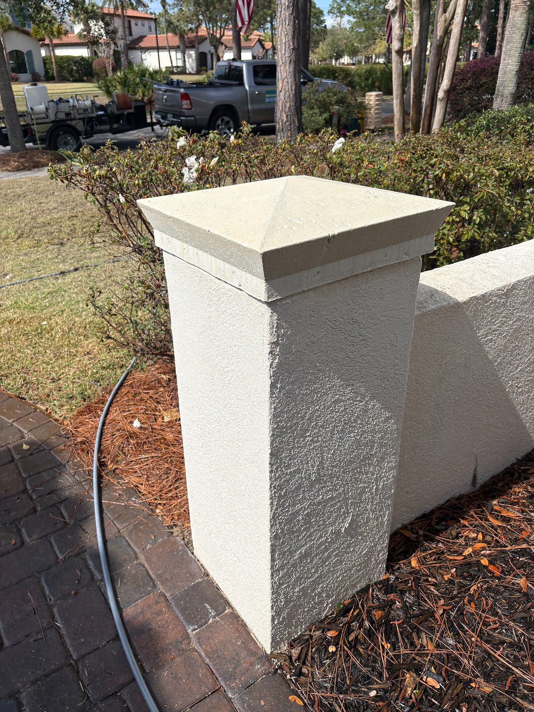 Aqua Pro Pressure Washing Solutions recently completed a professional house washing project in Miramar Beach, Florida. Like many homes along the Emerald Coast, this stucco exterior had begun to show signs of organic buildup caused by humidity, salt air, and consistent moisture exposure. While the staining was not severe, it created a dull, slightly uneven appearance that affected the overall curb appeal of the property.