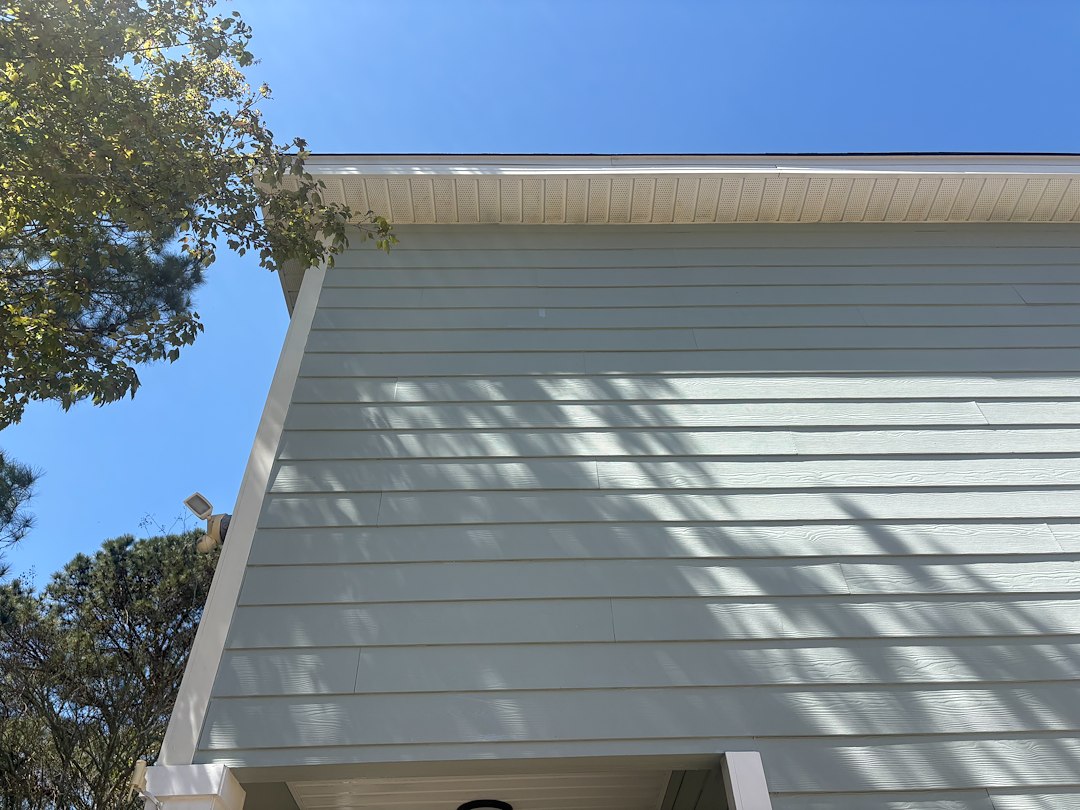 For this project, Aqua Pro Pressure Washing Solutions performed a professional house wash using a soft washing method designed to safely clean delicate exterior surfaces. This approach allows for effective removal of organic buildup without the risk of damage that can come from high-pressure cleaning.